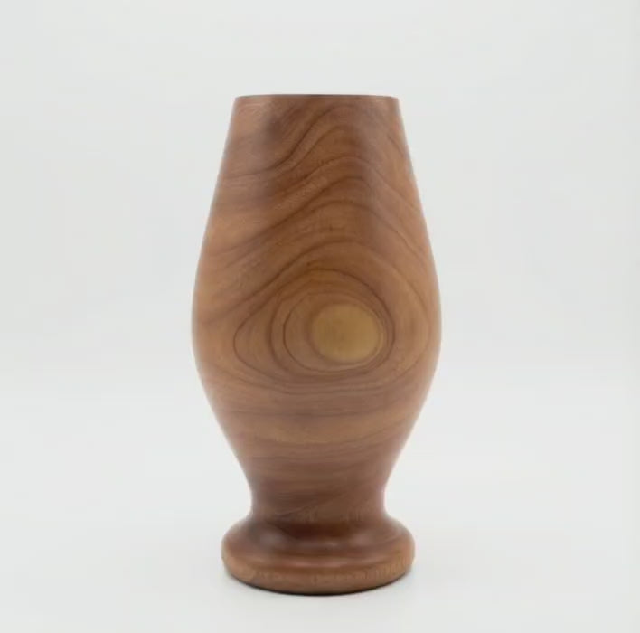 The BEQUEM Flora Vase is defined by its elegant, tapered form. Wider in the middle and gently narrowing towards the top and bottom, its silhouette is both classic and contemporary. Each vase is turned from a single piece of wood, showcasing the unique and beautiful patterns of the natural grain. The swirling lines and warm tones of the wood ensure that every Flora Vase is a one-of-a-kind creation, celebrating the perfect imperfections of nature.