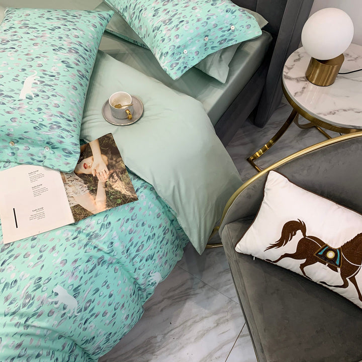 Easy CareThese luxurious nature inspired bed sets will bring a fashion forward, dynamic style to your bedroom in both soft neutral and bold hues. The lovely sets are crafted from 100 percent Egyptian cotton with an impressive 600 thread count that gives the bed sheet, duvet cover and matching pillowcases a soft, smooth feel.
